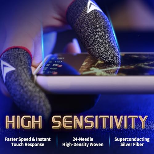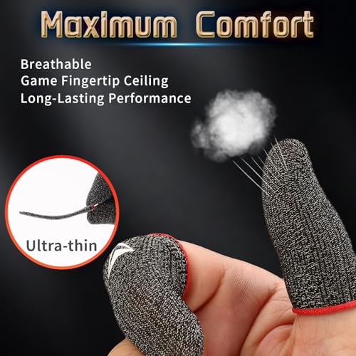 Specification: 6 Pack Gaming Finger Sleeves, Finger &Thumb Sleeves for Mobile Gaming,Anti Sweat,Ultra Thin,0.3mm Silver Fiber,Suitable for Most Gamers,Gaming Finger Gloves for PUBG COD Dedales Gamer,Covers