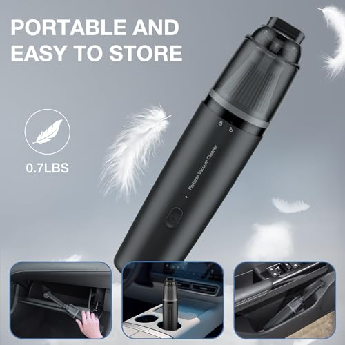 Super Suction Power 13000Pa :The high-performance car vacuum provides powerful suction power to easily remove dirt and debris from crevices in the car, under the seats, and small debris in the corners of keyboards and desks. Suitable for stubborn stains (e.g. pet hair, snack scraps) for efficient cleaning.