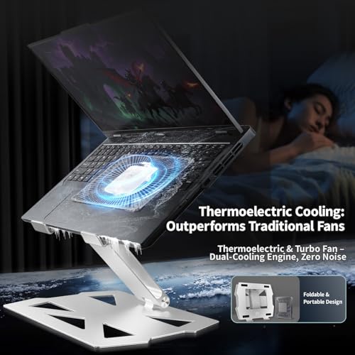 Peltier Laptop Cooler Stand – Thermoelectric Cooling Pad for 12-19″ Laptops, Detachable Design with Height/Angle Adjustment, Ultra-Quiet Cooling for Gaming&Office