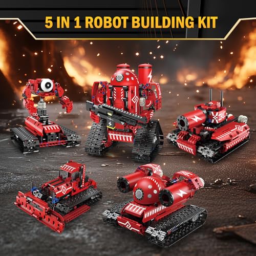 STEM Robot Building Kit for Boys Age 8-16, 5 in 1 Remote Control Robot Toys with 495 Pieces, Engineering Science Birthday Gifts for Kids Teens 8 9 10 11 12 13 Years Old