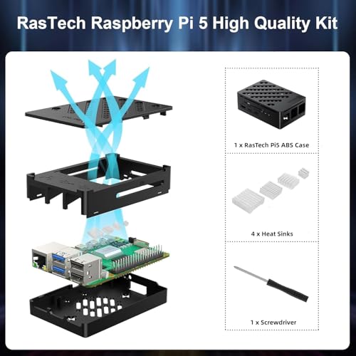 RasTech Raspberry Pi 5 Kit 8GB RAM with Pi5 Case,Heat Sinks,Srewdriver and Raspberry Pi 5 8GB Board Included