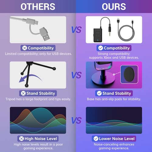 Wide Compatibility: A microphone that supports both XBOX and USB, allowing you to connect to XBOX controllers, Windows, Mac OS, Android, PS4/5 and Switch, enhancing your gaming experience with more freedom and enjoyment