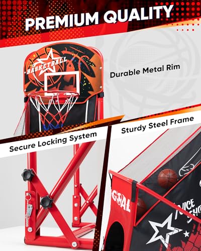Basketball Arcade Game for Kids: Foldable Basketball Hoop Set with Soccer Goal- Portable Indoor Outdoor Sports Play Toy- Gift for Ages 3-12 Boys Girls- Air Pump and 3 Balls Included