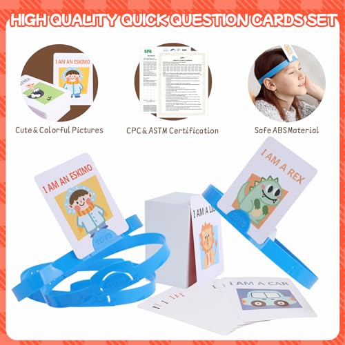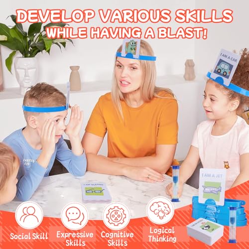 Specification: Headbands Guessing Board Game, Quick Question Game for Kids & Family (with Headbands, Picture Cards, Sand Clock), Who/What Am I Toy Set for 6+ Years Old, Party, 2-6 Players