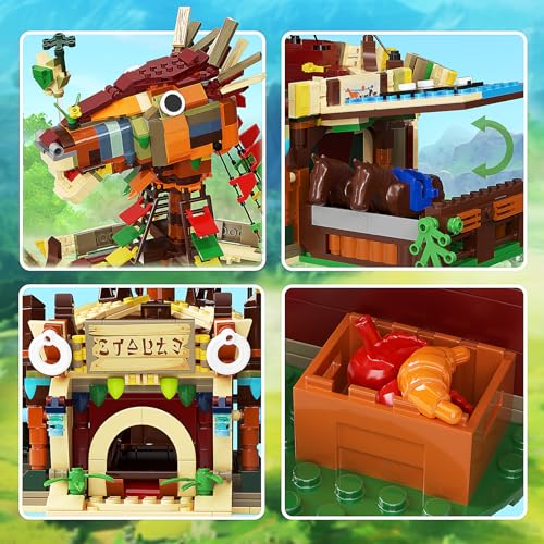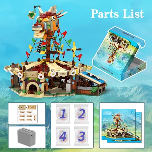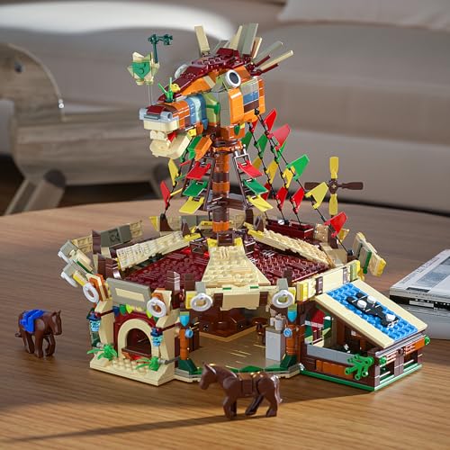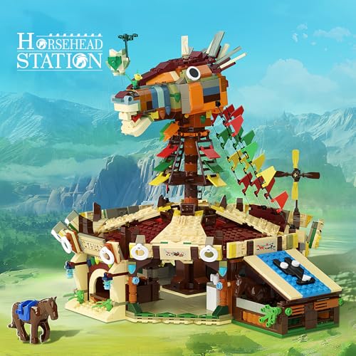 Specification: Horse Station Building Model Kit, Game Scene Hyrule Horse Head Station Yurt Tent Rooftop Building Toy, Game Scene Collectible Gifts Construction Toys for Adults or Fans (1764 PCS)