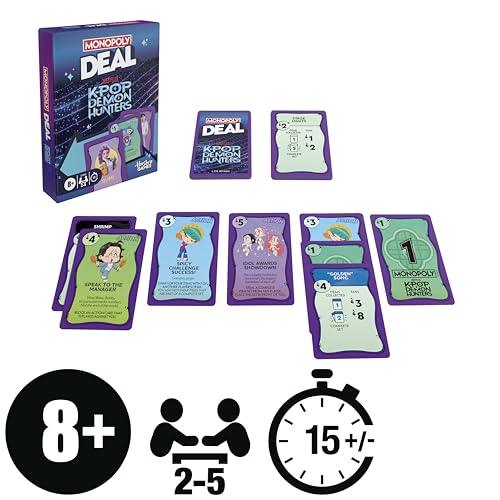 Specification: Monopoly Deal: Kpop Demon Hunters Card Game | Family Games for Kids, Tweens, Teens, and Adults | 2-5 Players | 15 mins. | Ages 8+