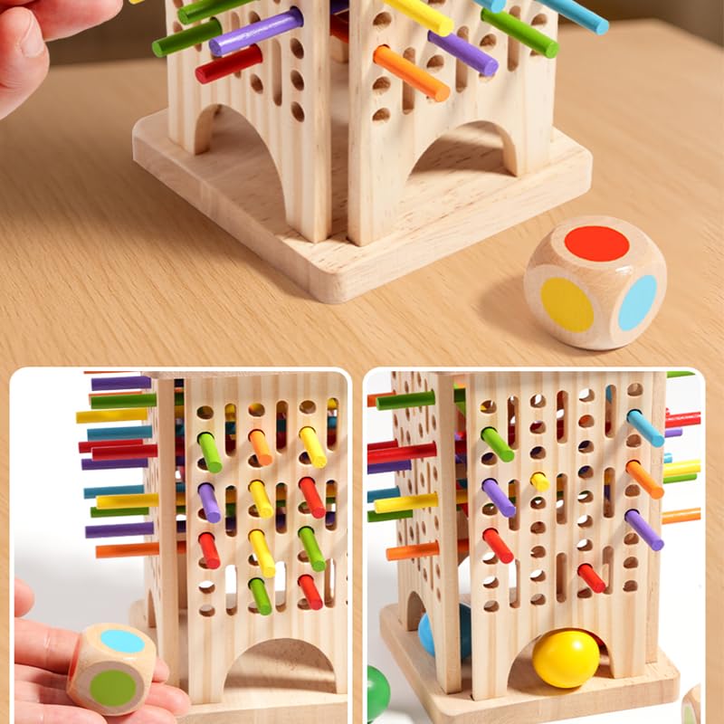 Wooden Craftsmanship Details:Crafted from premium beech wood with safe, odorless water-based paint, this durable game features smooth, burr-free surfaces for kid-friendly play. Includes tower, 30 colorful sticks, 4 balls, and 1 dice—doubles as pick-up sticks or math learning tool. Perfect for ages 3+.