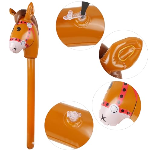 2PCS Inflatable Stick Horse,Inflatable Horse Head on Stick Horse Costume Pony/Halloween/Western Cowboy/Horse Baby Shower Birthday Party Decorations Supplies Favors Props, 37 Inches (Brown)