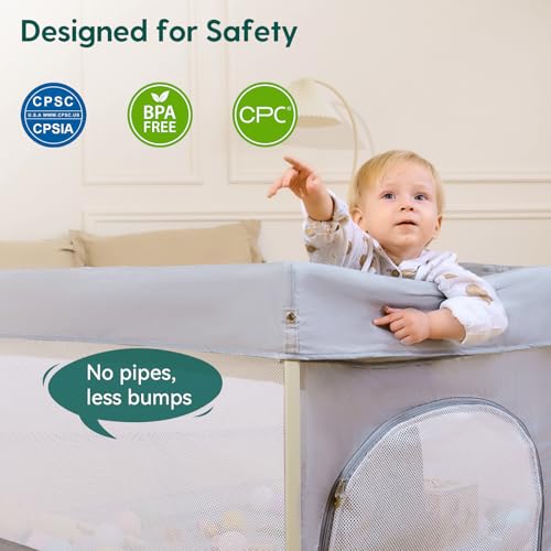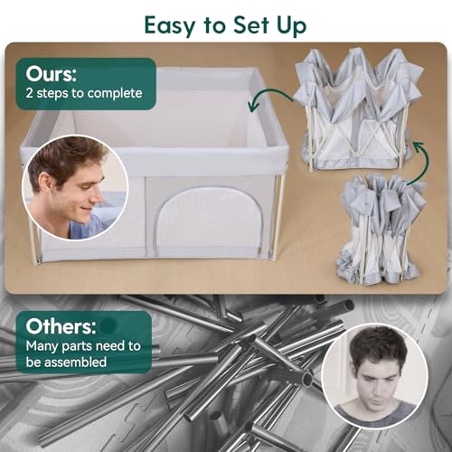 Safe and Built to Last: The ASTM-certified playpen is stable even when your baby is fully leaning against it. Made of steel and oxfoandrd cloth, our foldable play yard for babies is built to withstand the tests of time and the energetic play of children