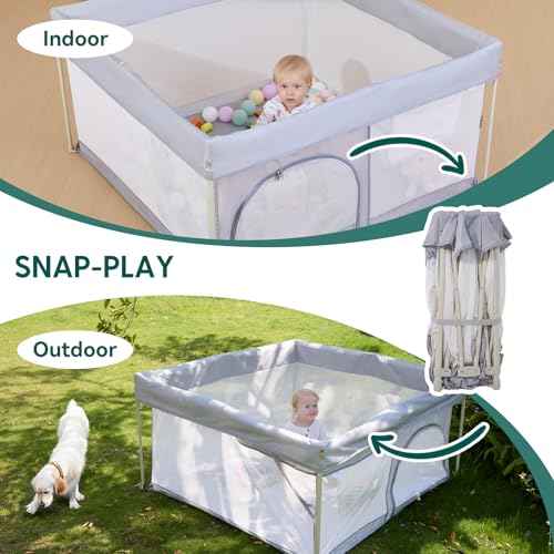 BABELIO Foldable Baby Playpen with Mat, 50″ × 50″ Portable Playard for Babies and Toddlers, Parents’ Picks Awards Winner, Indoor & Outdoor Kids Safety Play Pen Area, Travel Fence, Grey