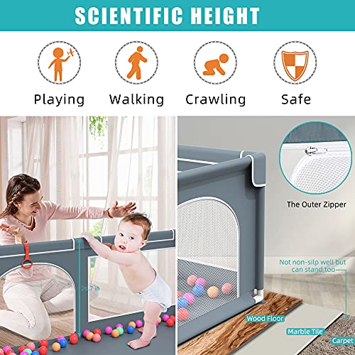 Baby Playpen, 79″ X 63″ Large Baby Playard Playpen for Babies and Toddlers, Play Pens for Indoor & Outdoor with 50 Ocean Balls, Anti-Fall Sturdy Safety Play Pen Play Yard with Soft Breathable Mesh