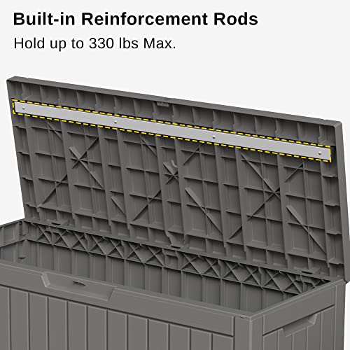 EAST OAK Outdoor Storage Box, 60 Gallon Deck Box Indoor and Outdoor Use, Waterproof Resin Storage Bin for Patio Cushions, Gardening Tools, Lockable, UV Resistant, Grey