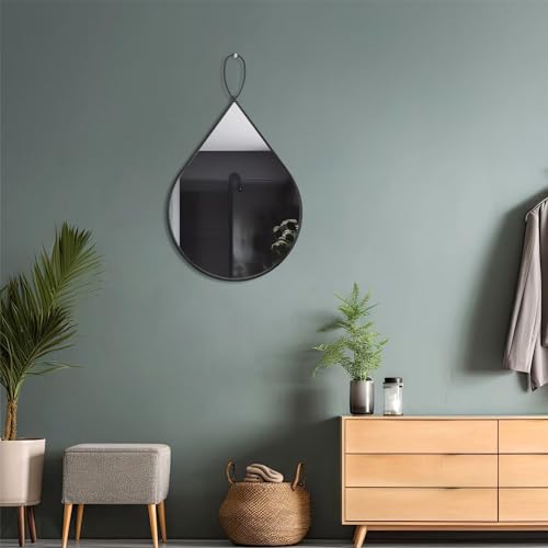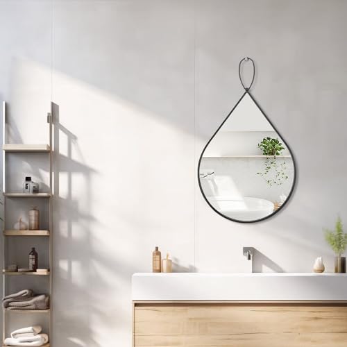 Wall Mirror with Metal Framed Black Teardrop Hanging Mirror Modern Decorative Mirrors for Bathroom Living Room Entryway Hallway Small